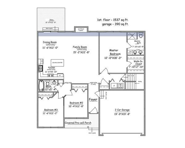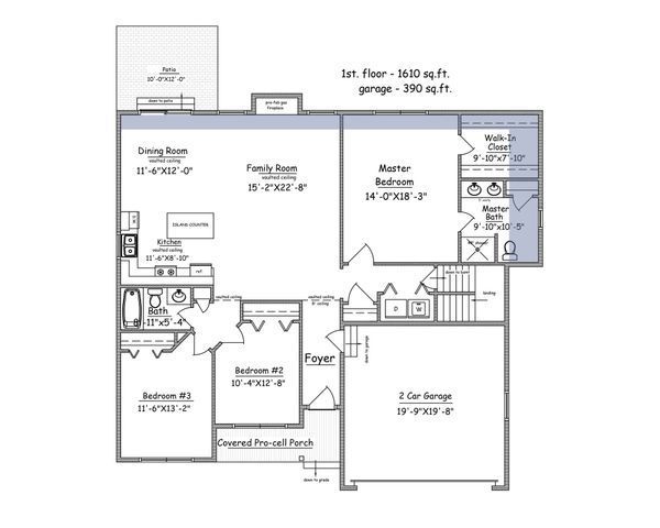 EXCEPT this plan is 2' larger in depth in the Living Room, Dining Room, Kitchen & Master Bedroom Suite (the Blantyre Plan) with an additional 4' in width in the Master Bedroom Suite adding extra square footage in the Master Bedroom and/or Walk-in closet and Master Bath - as shown in blue.